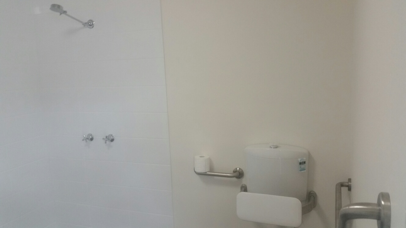 | Interior and front roller doors. | Disabled bathroom. | Downstairs kichen |