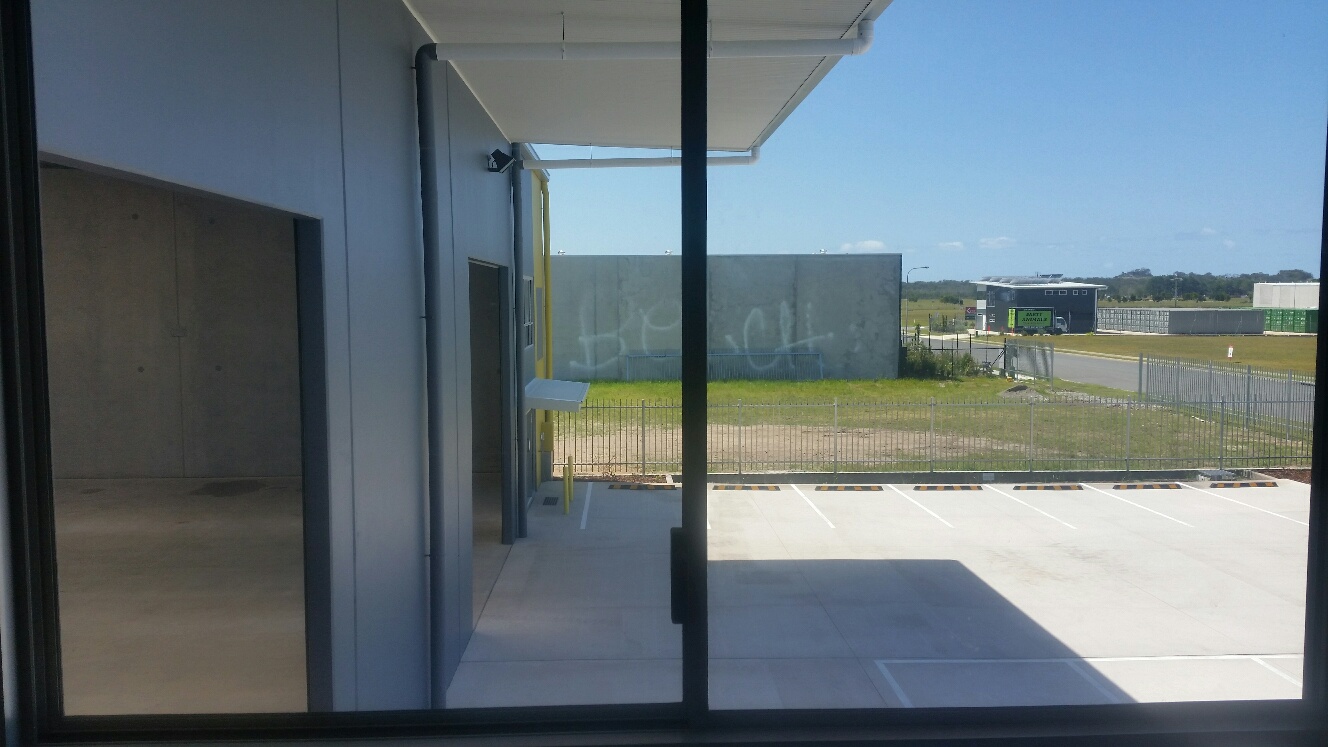| Interior to rear and waterpark. | Interior and rear roller doors. | Street side office. |
